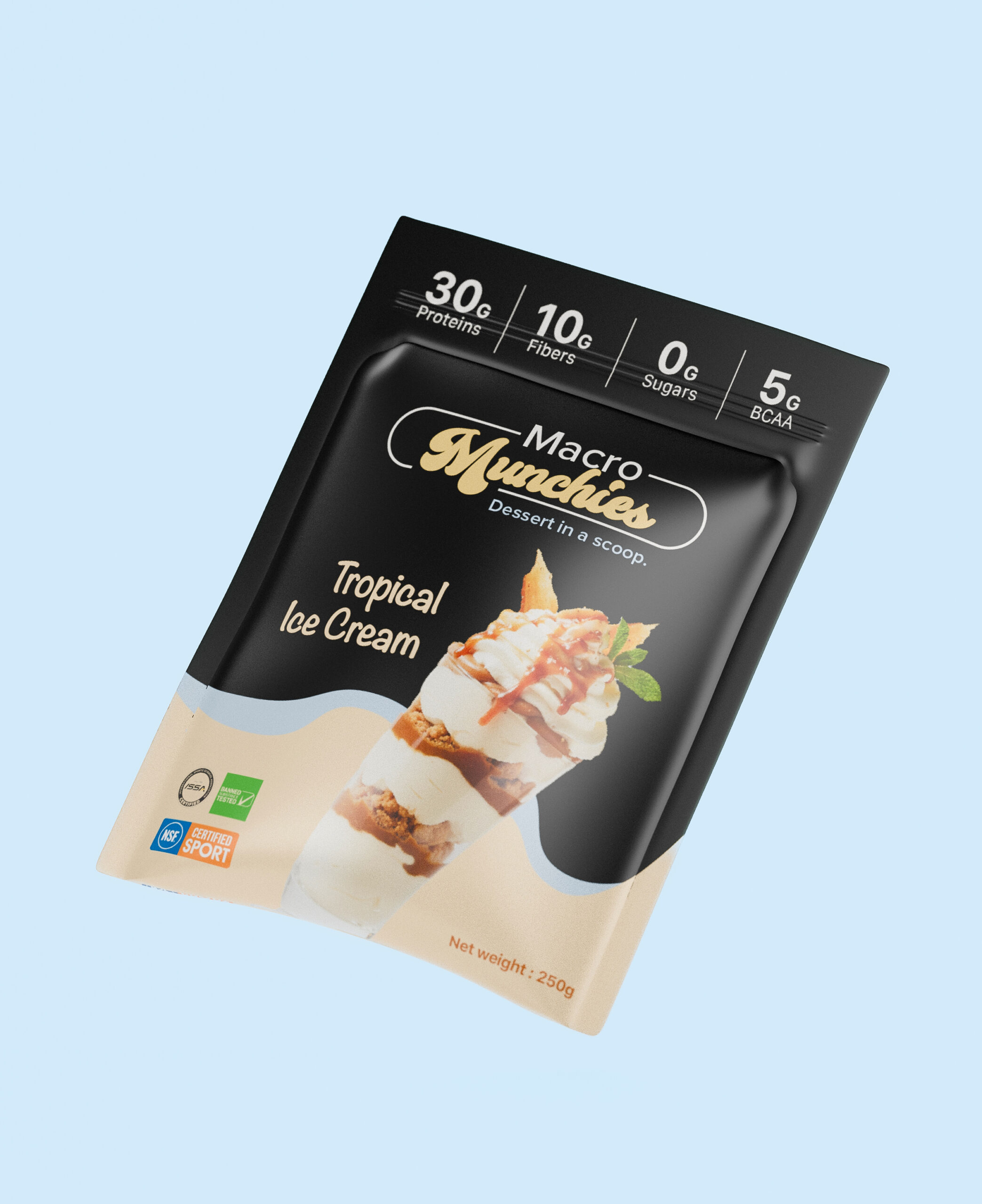 Des protéines, des couleurs éclatantes et tout plein de saveurs! La commande : transposer ces élément avec des rendus 3D des nouveaux emballages de la nouvelle collection des suppléments Macro Munchies.